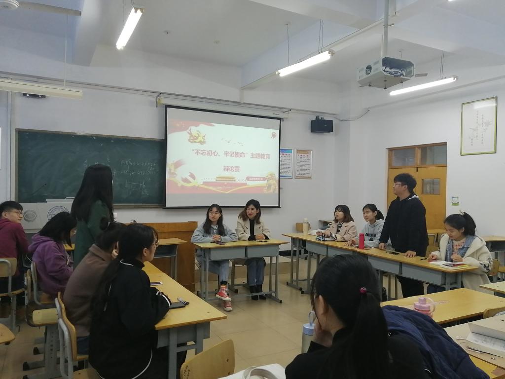 为激发党员同志学习热情,巩固学习内容,2019年11月14日下午13:30分,旅游管理党支部于逸夫楼A609组织开展“不忘初心、牢记使命”主题教育之“不忘初心,方得始终”辩论赛活动。