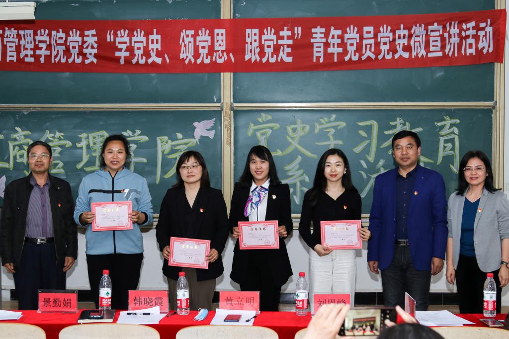 为引导党员师生从百年党史中感悟思想伟力,汲取奋斗力量,5月13日下午,beat365平台官方网站党委举办“学党史、颂党恩、跟党走”青年党员党史微宣讲活动。青年党员教师和学生党员代表共计28人参加了比赛,学院院长黄立明、副书记副院长韩晓霞、原学院党委书记刘恩峰、教工党支部委员景勤娟、柴朝华作为评委出席,学院全体党员师生观看了比赛。
