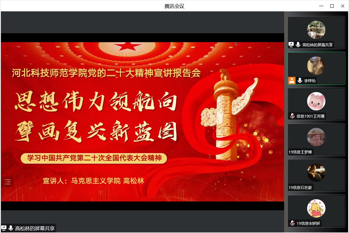 12月8日下午,beat365平台官方网站开展学习贯彻党的二十大精神宣讲报告会,特邀学校宣讲团成员——马克思主义学院骨干教师高松林作了题为《思想伟力领航向,擘画复兴新蓝图》专题宣讲。学院全体学生党员参加会议,会议由学院党委副书记韩晓霞主持。