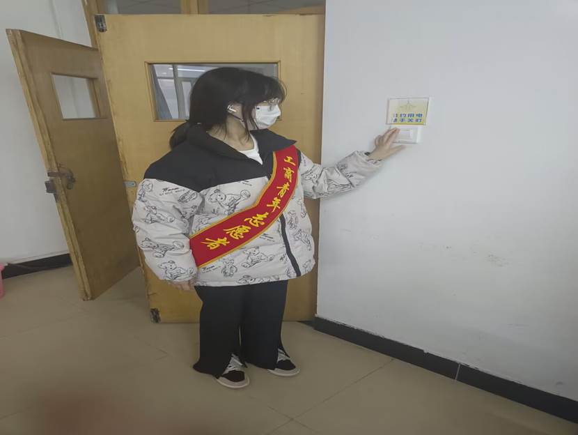 志愿者们在教学楼、宿舍楼按楼层检查水房、饮水机用水情况,走进每间教室查看白天开灯浪费电力现象。并用实际行动宣传节水节电的优良传统,发放节水节电宣传简报,倡导同学们在教室等公共场所白天尽可能利用自然光,不开或少开照明灯,做到人走灯灭,杜绝“长明灯”现象。