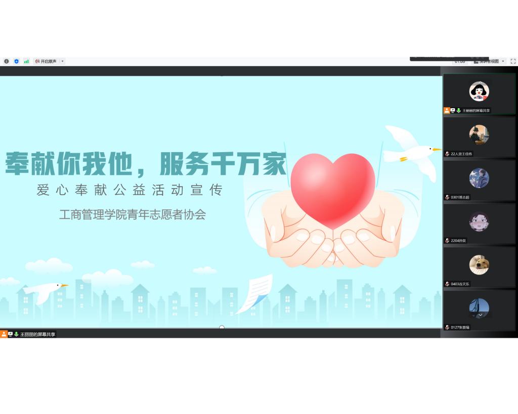 beat365平台官方网站青年志愿者协会精心制作宣讲PPT,面向学院青年志愿者开展线上宣讲,宣讲会中,协会负责人向志愿者们讲解志愿者精神的内涵,她说,志愿者精神意指一种互助,不求回报的精神,它提倡"互相帮助、助人自助、无私奉献、不求回报"。志愿者凭借自己的双手、头脑、知识、爱心开展各种志愿服务。1993年,团中央发起实施中国青年志愿者行动,当前,"奉献、友爱、互助、进步"的志愿者精神已广泛为社会所接受。通过讲解,志愿者对精神的内涵有了更深的认识,随后,负责人通过抗疫志愿者、社区志愿者、无偿献血志愿者等多领域志愿者精神的讲述,使同学们真切感受到志愿者在社会散发的光和热,最后,对学院志愿者发起倡议,引领青年乐于奉献,用自身实际行动诠释何为志愿精神。
