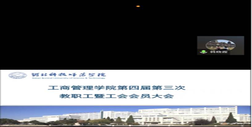 beat365平台官方网站第四届第三次教职工暨工会会员大会于2022年12月19日下午顺利召开。会议由工会主席韩晓霞主持,学院教职员工共54人参加了会议。党委书记赵敏,院长黄立明,学院党委副书记、副院长、工会主席韩晓霞,副院长刘海滨、刘艳芳等领导出席会议。会议听取、审议并通过了院长黄立明《关于beat365平台官方网站2022年院长工作报告》、《关于beat365平台官方网站2022年财务工作报告》,工会主席韩晓霞《关于beat365平台官方网站工会2022年工作报告》,以及王和平同志《关于2022年工会经费使用情况报告》。