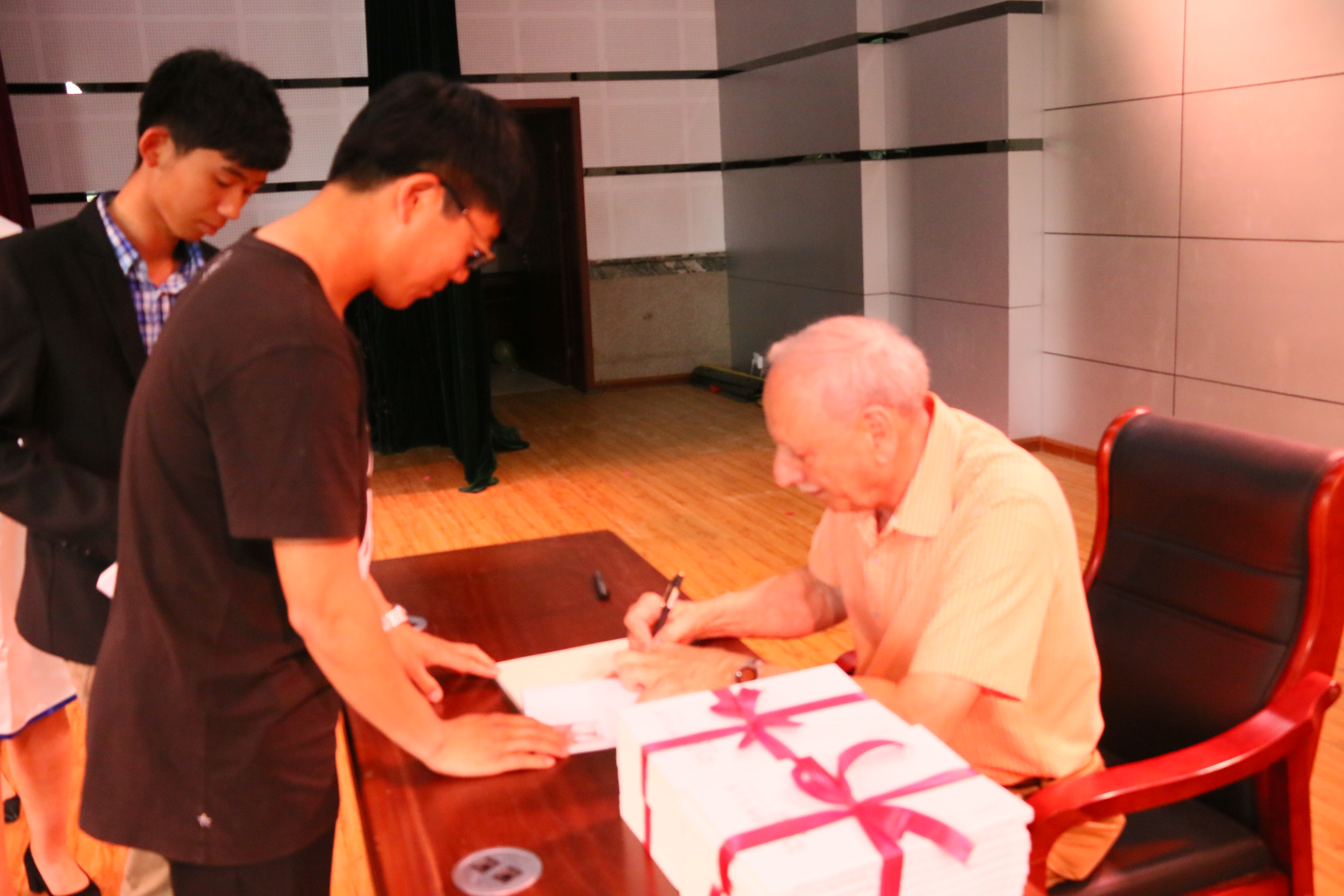 讲座期间,乔达诺先生分享了他成长与成功的经历,并围绕营销、创业和人生等多领域话题与师生进行了深入的交流。他诙谐幽默的语言即富有人生启迪又给大家带来阵阵欢笑,同学们则用英语与乔达诺先生进行了愉快的交谈。随后,乔达诺先生向学院捐赠了他的著作《销售与人生》,学院副书记副院长李强华教授代表学院回赠了礼物。按照乔达诺先生的意愿,所赠图书将进行义卖,所得款项全部捐赠给beat365官网精准扶贫村小学。