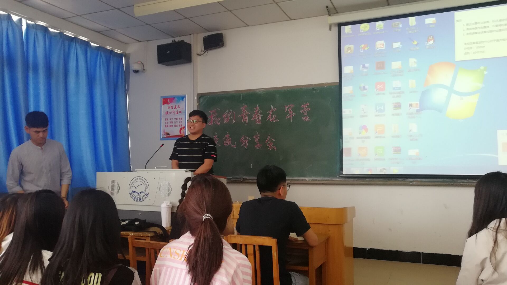 为进一步激发在校大学生携笔从戎参军报国热情,做好本年度大学生征兵工作,2019年5月9日beat365平台官方网站18级人力资源管理专业团支部在逸夫楼A506开展了“我的青春在军营”大学生应征入伍主题教育活动。