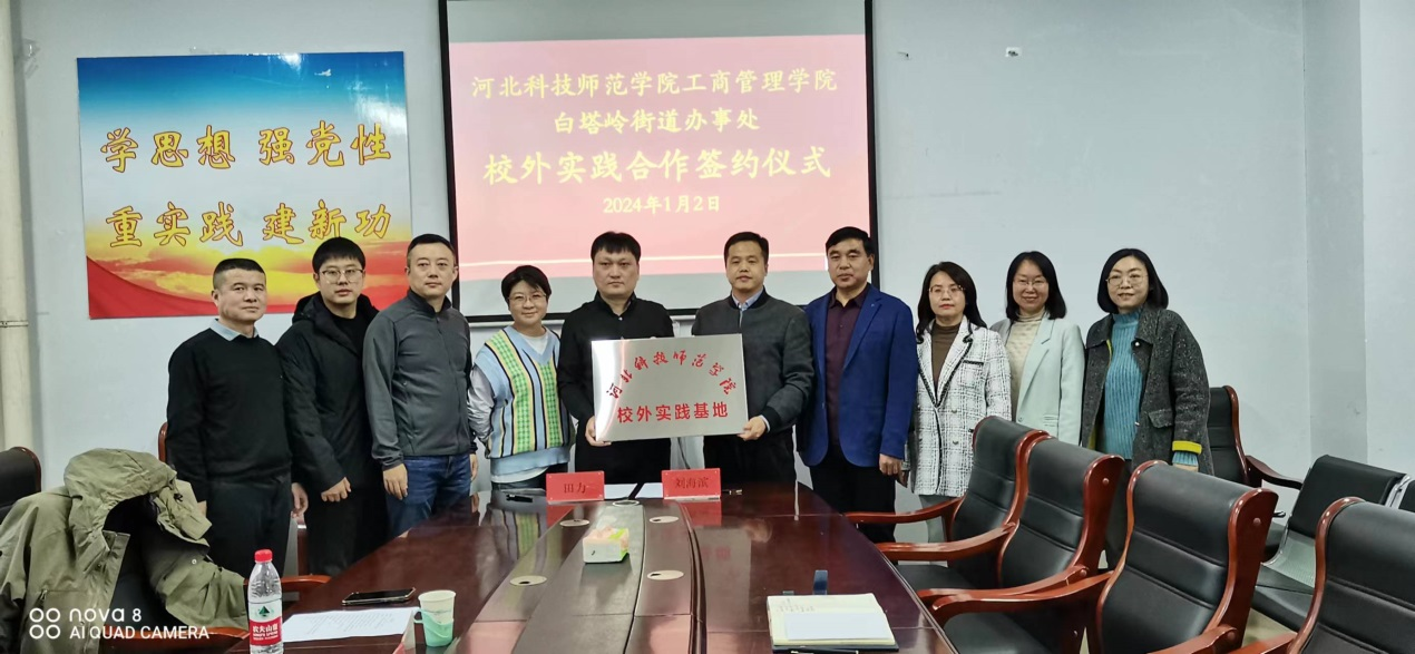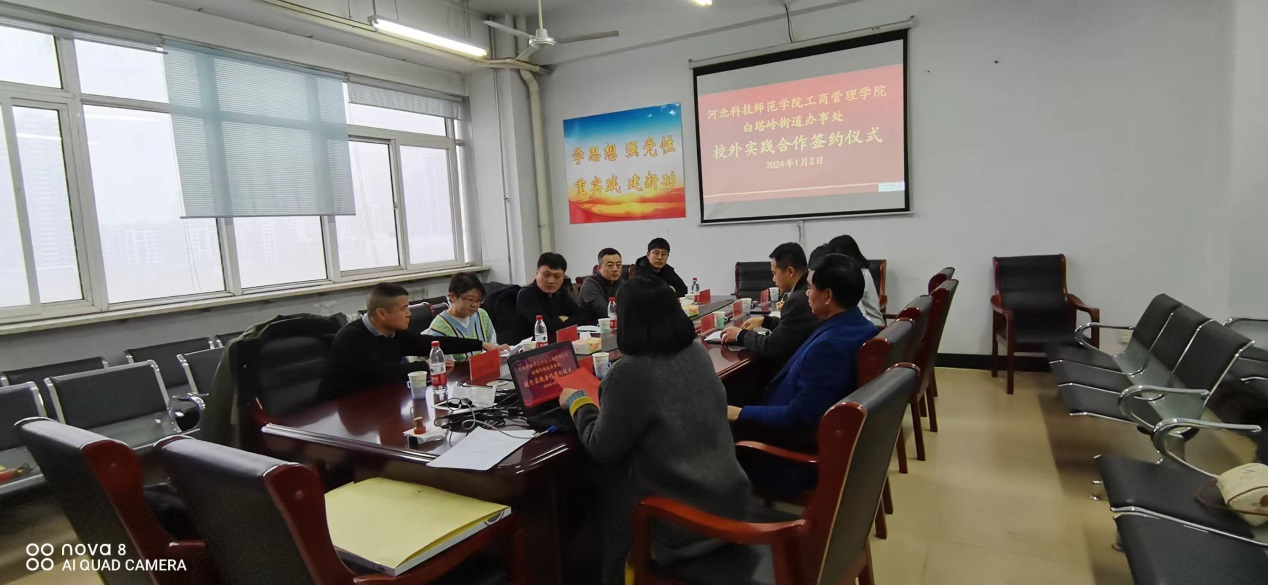 2024年1月2日下午,beat365平台官方网站beat365平台官方网站与秦皇岛市白塔岭街道办事处校外实践合作协议签约仪式在逸夫楼608会议室举行。出席本次签约仪式的有beat365平台官方网站领导班子成员及人力资源教学部教师代表,白塔岭街道办事处党工委书记、党工委副书记、办事处主任、组宣委员及党建办主任等五位领导。