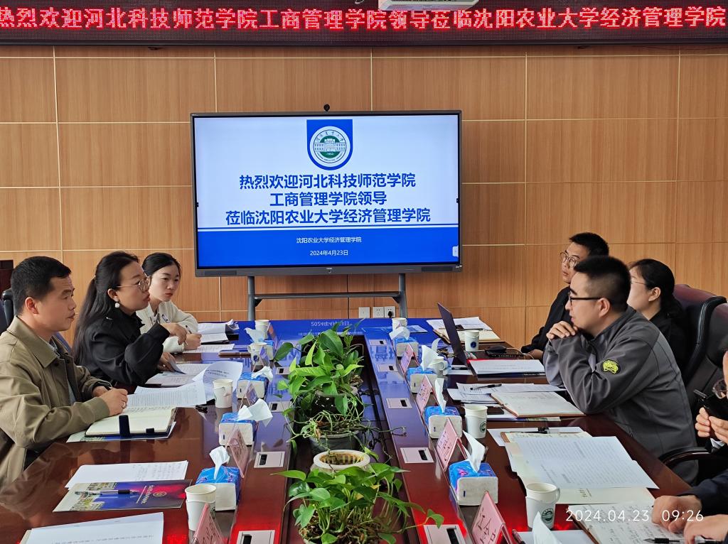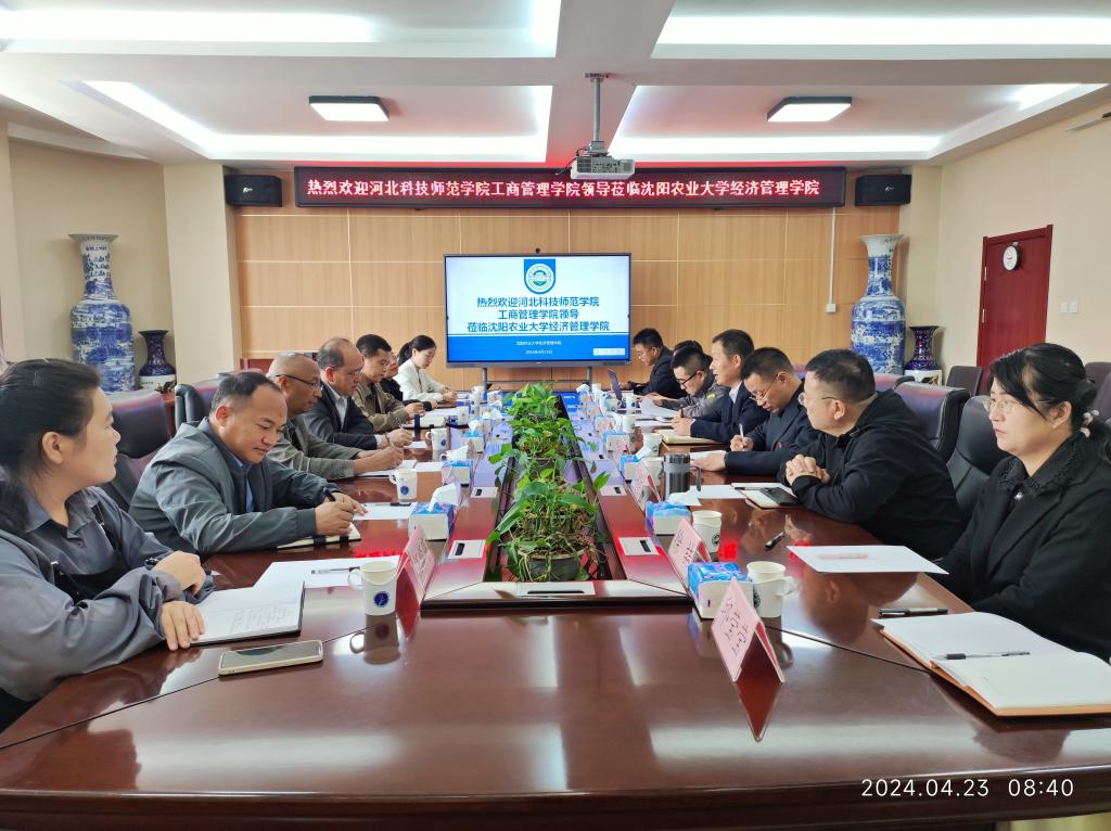 4月23日,beat365平台官方网站刘海滨院长带队赴沈阳农业大学经管学院就农业管理专业硕士培养进行交流学习。沈阳农业大学经管学院孟祥龙书记等8位领导和老师参加了交流活动。