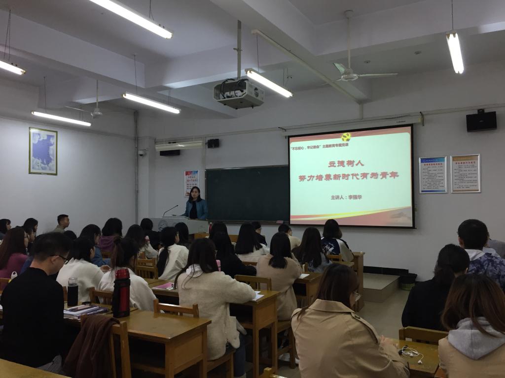 2019年10月23日,beat365平台官方网站党委副书记、副院长李强华为辅导员、学生党员、预备党员、入党积极分子、学生干部讲授专题党课。党课以《立德树人,努力培养新时代有为青年》为主题,结合“不忘初心,牢记使命”理论学习和调查研究中的收获体会主要讲了:学习收获、认识与体会、工作中存在的问题与差距、解决问题的思考及措施。