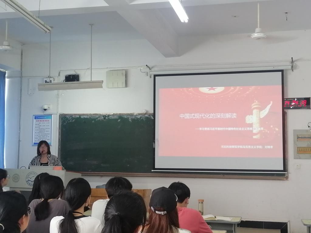 会上,刘艳冬老师从中国式现代化的历史追溯,主要从中国式现代化的特征、本质和意义、全面建设社会主义现代化强国的战略安排三个方面进行宣讲。