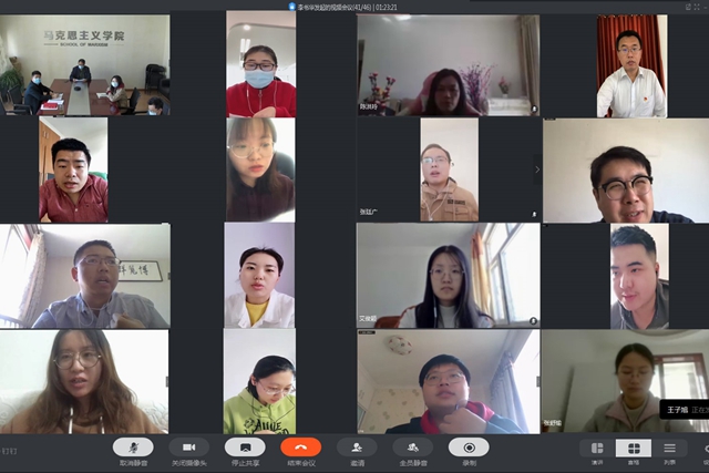 4月23日上午,在第25个世界读书日到来之际,必赢242net官网与当代中国马克思主义读书活动试点单位—新浪微博党委共同开展了“云端携手 你荐我读”世界读书日读书共建活动。微博党委委员、微博党委用户及内容运营党支部书记宋爽等6名党员以视频连线的方式参加活动,必赢242net官网党总支书记兼院长刘存福、副院长陈洪玲、机关党支部全体党员、部分青年教师代表及全体研究生参加了此次活动。活动由校团委兼职副书记、院团委书记张雷主持。